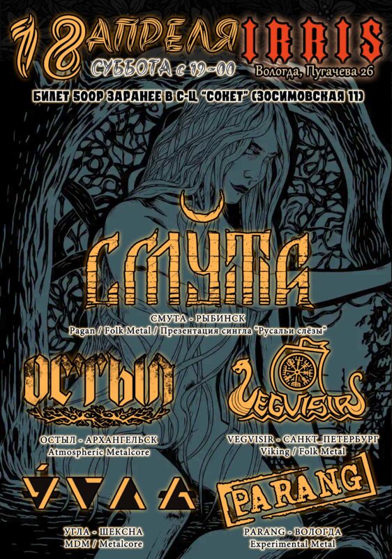 18 апреля возвращаемся в Вологду! И не с пустыми руками — в хорошей компании представим наш сингл «Русальи слёзы»!Встреча: 18 Апреля — METAL CONFEDERATION — IRRIS